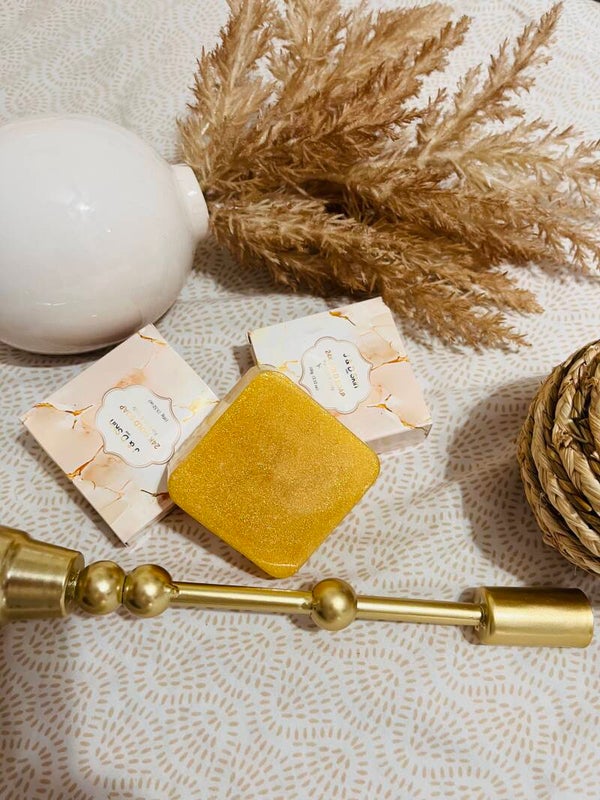 This 24-carat gold soap cleanses and nourishes with golden power, leaving the skin soft, radiant and rejuvenated. Its luxurious formula improves the tone and firmness of the skin, youthful appearance. Unifies the tone, improves the Anti-aging shine and reaffirms the skin's ingredients: water, sodium cocoate, glycerin, 24-carat gold power, olive oil, coconut oil, shea butter, vitamin E, turmeric extract, hyaluronic acid, citric acid, sodium hydroxide, collagen, cocamidopropyl betaine, aloe vera extract, chamomile extract, tocopheryl acetate.
